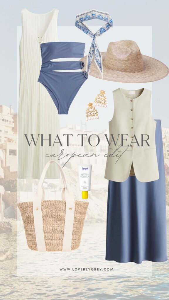 To wrap up, I’ve put together this collage of essentials that I think would be perfect for your spring or summer getaway. This bandeau swimsuit and cover-up from H&M are ideal for a chic beach day, offering both style and comfort. I’m also loving the timeless appeal of this long suit vest paired with a silk skirt and a straw hat—it’s the perfect outfit for when you want to look stylish while exploring yet still stay comfortable throughout the day.