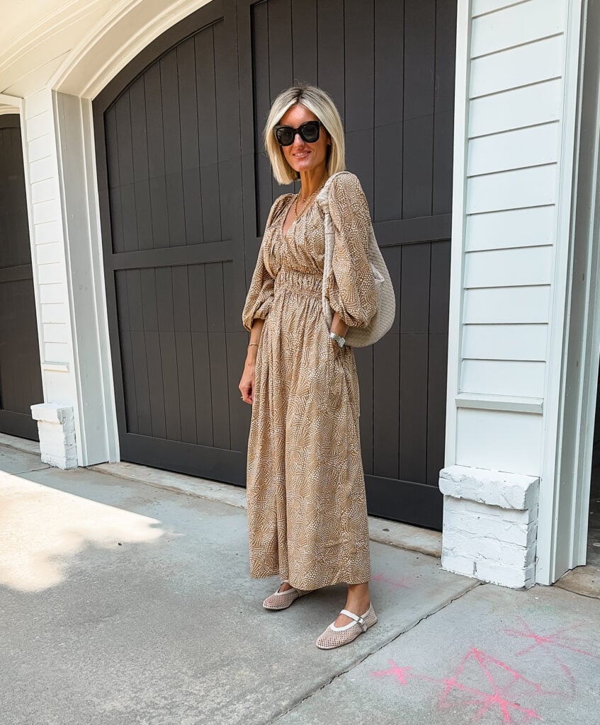 It’s no secret that I love a good neutral maxi dress, and this one is no exception! The khaki and white color palette is perfect for late summer—here, I’ve paired it with my new favorite mesh flats for an effortlessly chic look. As we move into fall, this maxi dress transitions beautifully. You can easily add a denim jacket for a laid-back vibe, or throw on a sweater and belt it to create the illusion of a top-and-skirt combo. This dress is a perfect example of how a well-chosen piece can carry you through multiple seasons with just a few simple styling tweaks.
