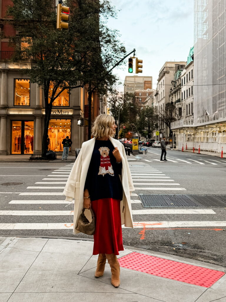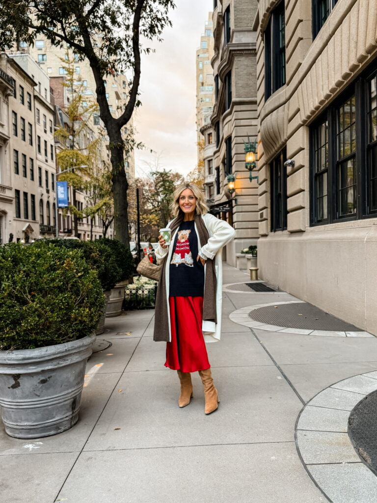 I made a quick trip to NYC for a brand meeting, and truly… it was one of those whirlwind visits that just fills your cup. The city was already starting to sparkle for the holidays, and getting to soak in that first wave of magic felt so special. It was the lights, the shop windows, even the chill in the air. Between the beautiful hotel, cozy dinners, morning coffee runs, and wandering around in festive outfits, every moment felt like a little snapshot of why I love this season so much. It was the quickest but best trip, the kind that leaves you inspired, grateful, and reminded why NYC is always, always worth it.