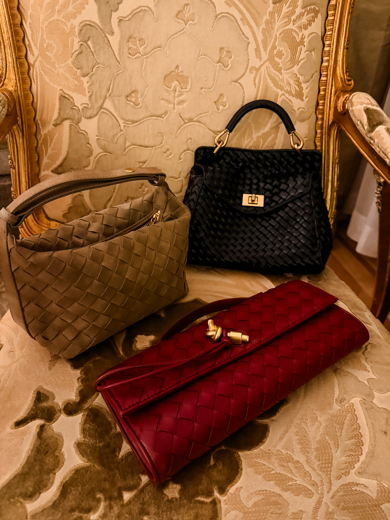 BEIGE SHOULDER BAG | RED CLUTCH | BLACK HANDBAG