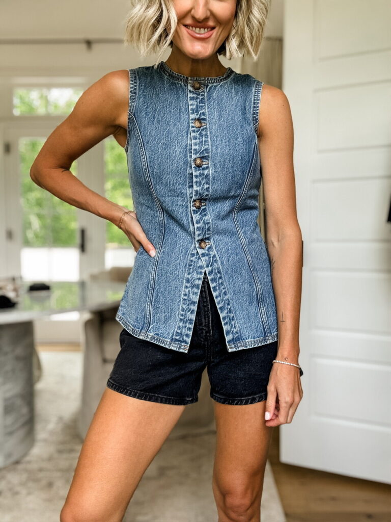 To add a bit of edge, pair black denim shorts with a classic denim vest. This layered look is perfect for concerts or laid-back weekends.
