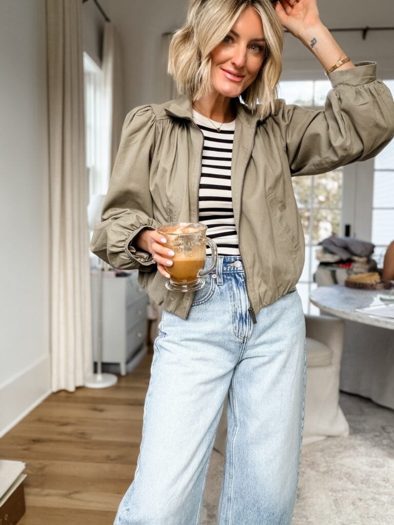 Wrapping things up with two more amazing light layers! First is this adorable bomber jacket. The color and fit feel so unique and elevated, making it a standout piece that still pairs effortlessly with everyday basics. It is the kind of jacket that instantly pulls a look together without trying too hard. And of course, we cannot forget about cardigans. They are such an essential light layer for spring. This camel-colored one from Quince is timeless and classic, making it a piece you will reach for year after year. It layers beautifully over tanks, tees, or even dresses, and adds just the right amount of warmth for those in-between spring days.