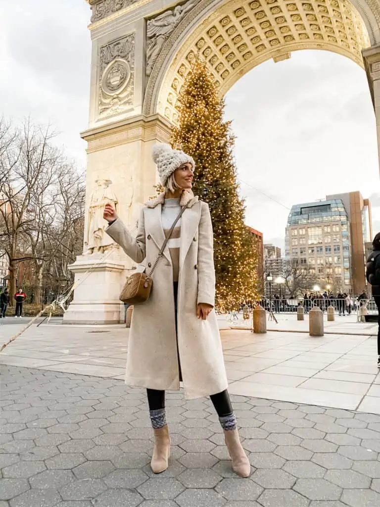 Coat \\ Sweater \\ Beanie \\ Leggings \\ Socks \\ Booties