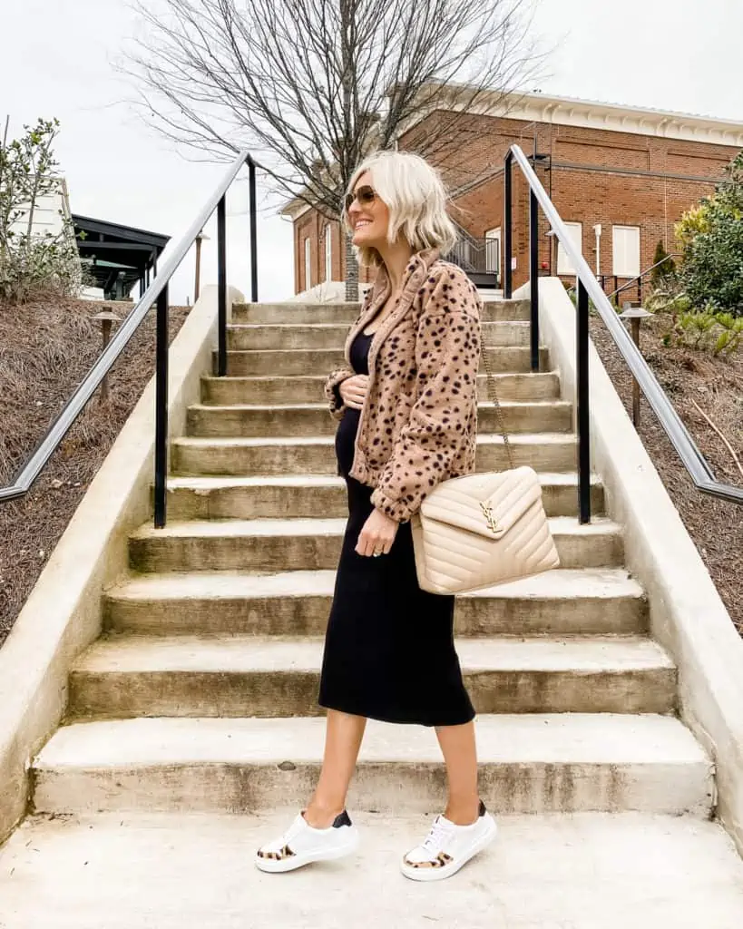 Black Bodycon Midi Dress \\ Leopard Sherpa \\ YSL Medium Lou Lou \\ Cole Haan Sneakers
