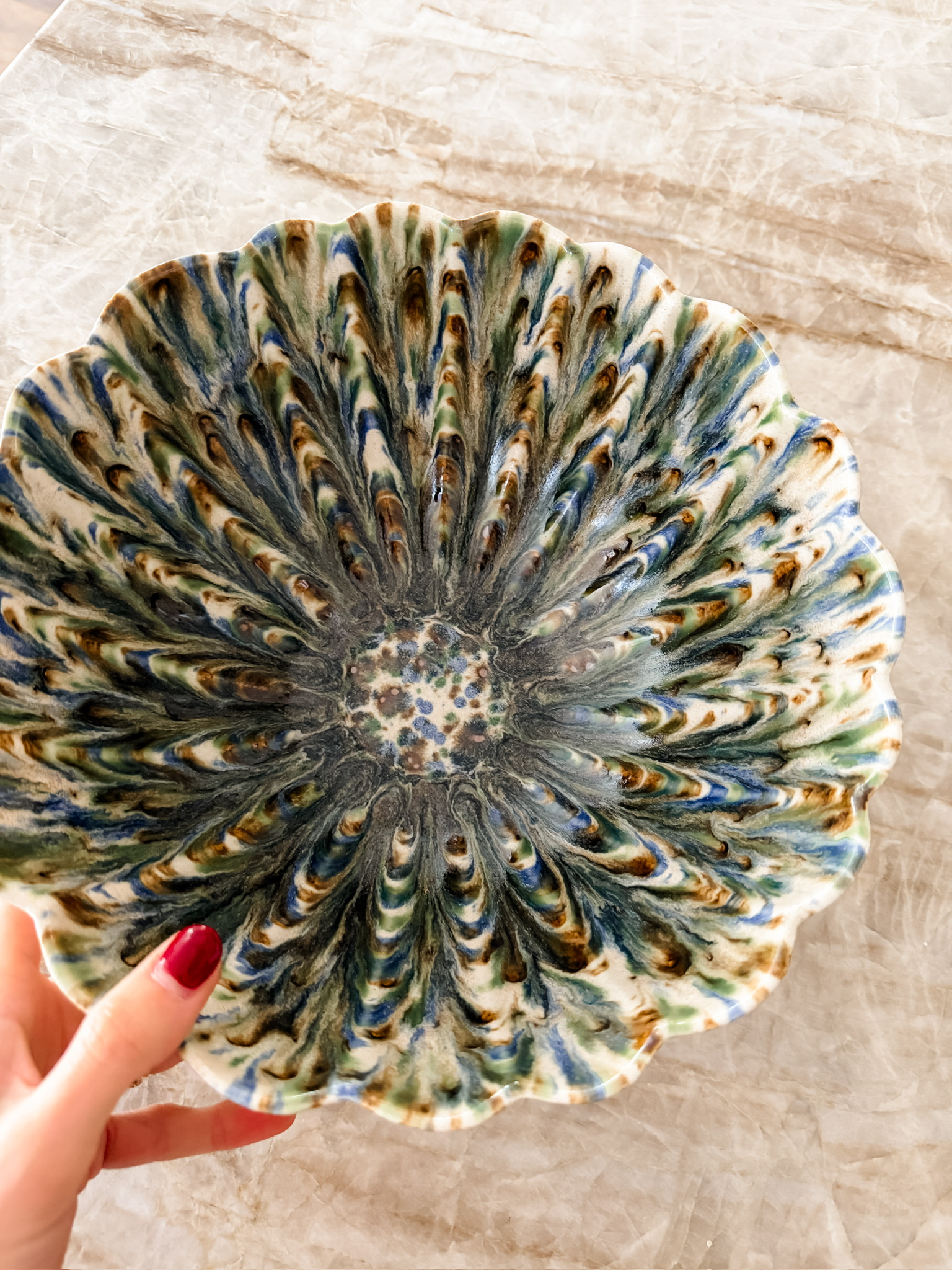 This scalloped ceramic bowl is absolutely stunning and looks like a piece of art on its own. The texture and colors make it such a unique serving piece for salads, pasta, or seasonal sides. It also looks beautiful sitting out on a countertop with fruit or on a shelf as decor. It is the perfect mix of practical and pretty.