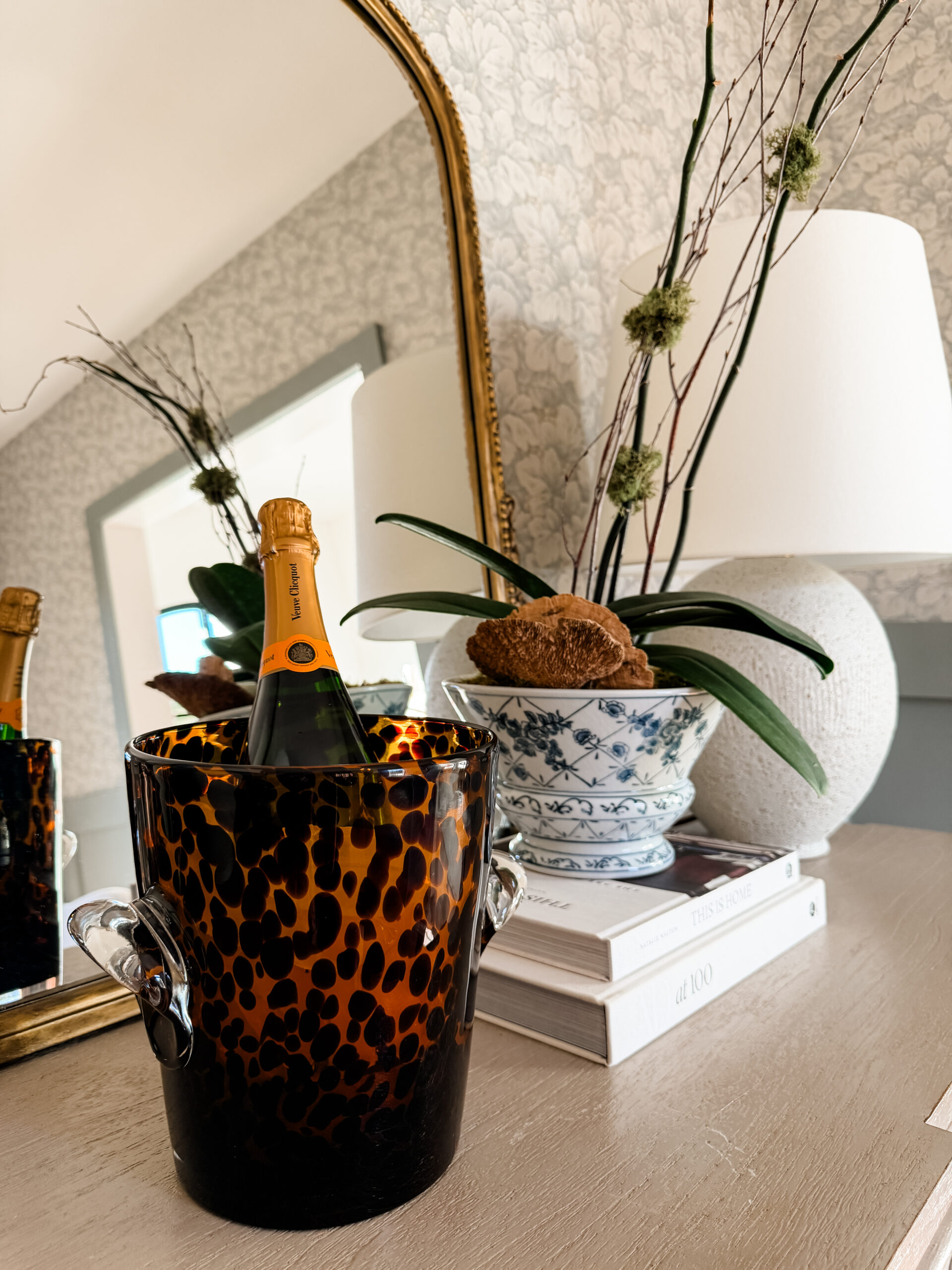 This tortoise ice bucket is such an eye-catching piece and instantly elevates any bar cart or countertop. The pattern gives it a rich, classic feel that works beautifully, year-round. It is perfect for chilling a bottle of bubbly, but also looks gorgeous as decor when not in use.